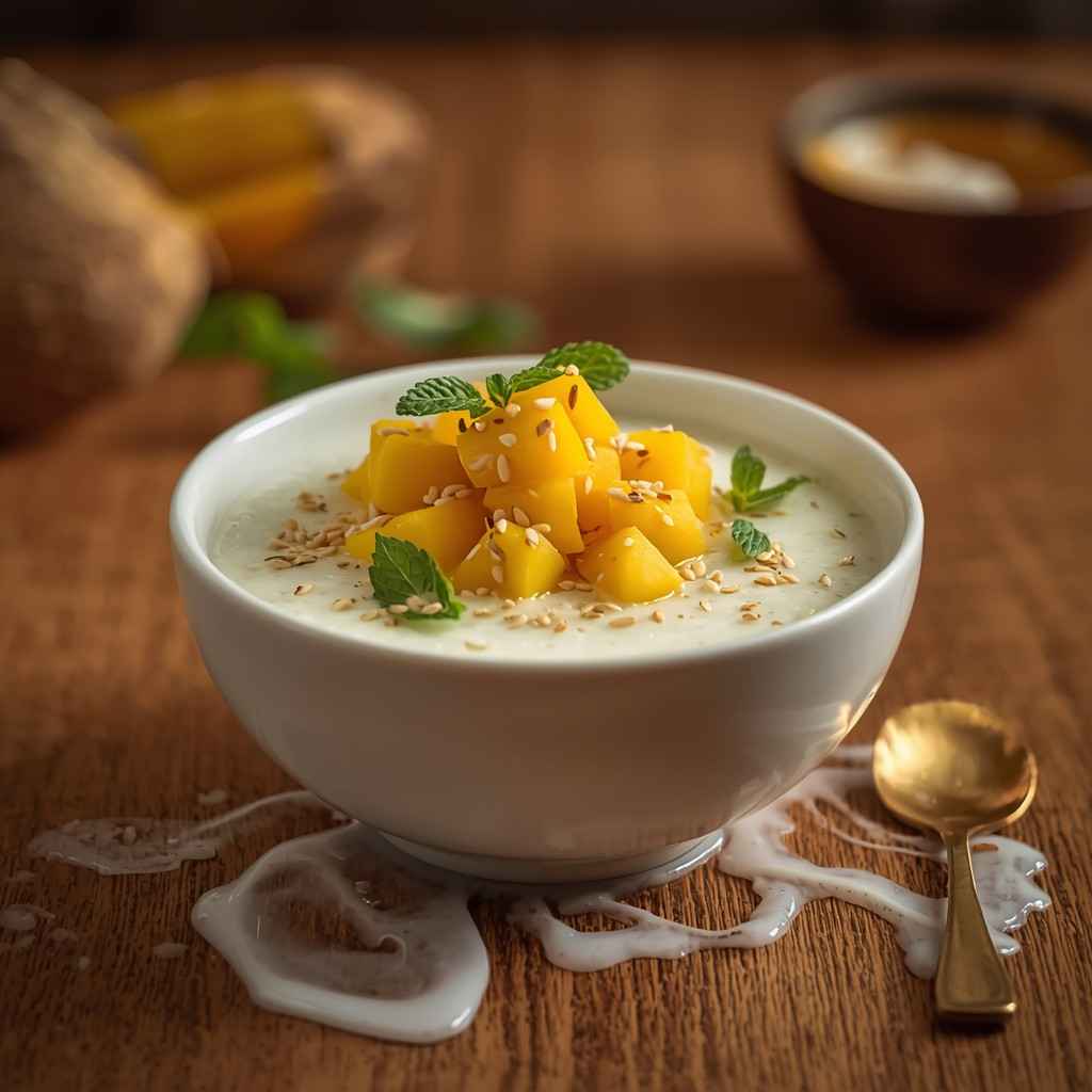 This dish is perfect for warm weather, festive occasions, or anytime you crave a light, indulgent dessert. It’s easy to make, visually stunning, and a true favorite in Thai cuisine — a must-try for anyone who loves sweet, fruity, and creamy desserts.
