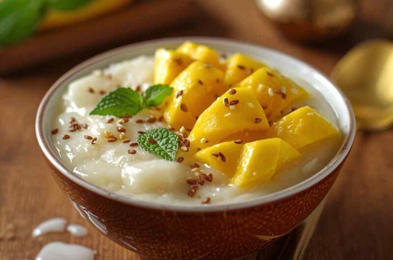 It’s a recipe that’s visually stunning, with the contrast of white coconut rice against golden mango slices. Each bite is a delightful combination of sticky, creamy, and juicy textures. It’s also naturally gluten-free and vegetarian-friendly, making it accessible for a wide variety of diets.