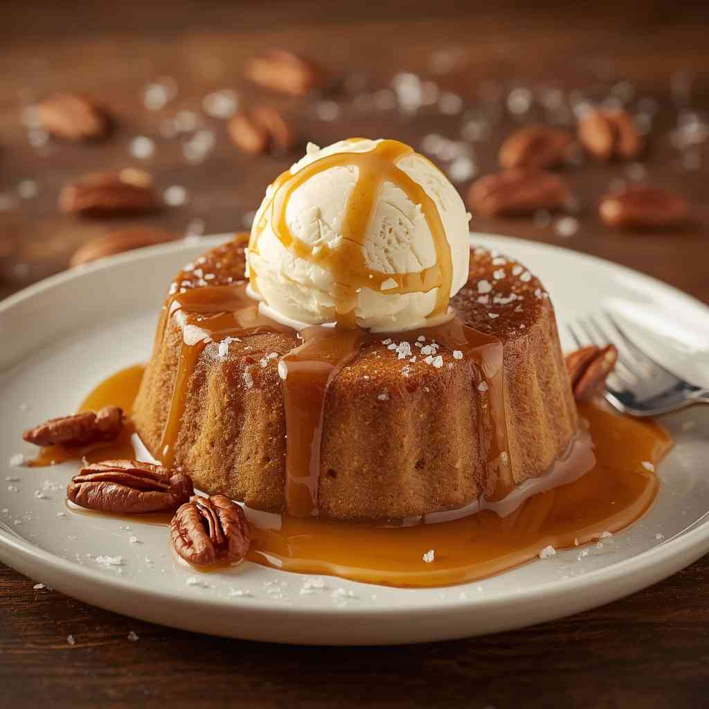 - Step 5: Make the Warm Toffee Sauce : In a saucepan over medium heat, melt butter. Add brown sugar and cream, stirring constantly. Simmer for 3–5 minutes, until the sauce thickens slightly. Stir in vanilla extract and a pinch of salt. Keep warm until ready to serve.