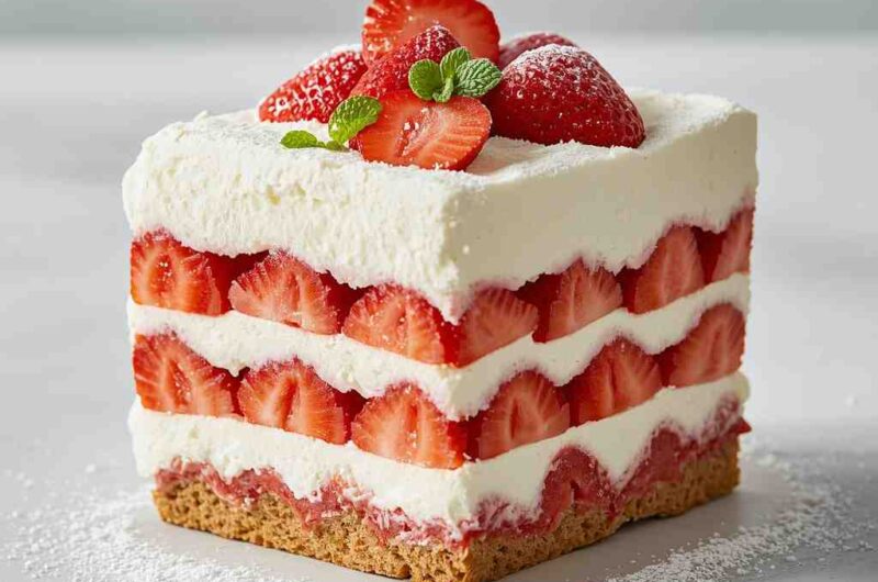 Strawberry Icebox Cake is a no-bake, creamy, and refreshing dessert that captures the essence of summer in every bite. Layers of luscious whipped cream, fresh strawberries, and graham crackers come together to create a cool, dreamy treat that melts in your mouth. It’s light yet satisfying — a perfect dessert when you want something sweet without turning on the oven.