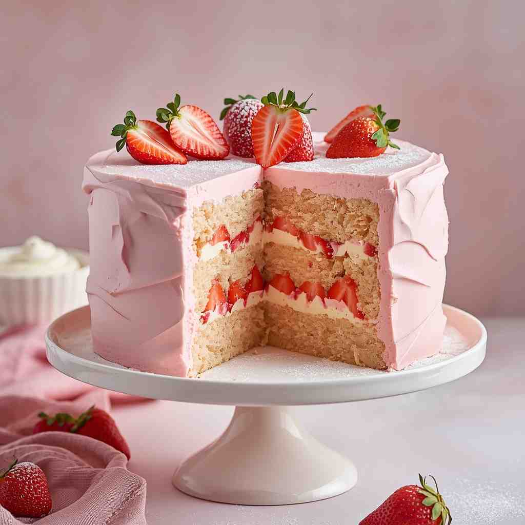 The combination of sweet strawberries, silky whipped cream, and a subtle sponge or biscuit base creates the perfect harmony. It’s not just delicious, it’s visually stunning too — a pink, cloud-like dessert that looks as good as it tastes.