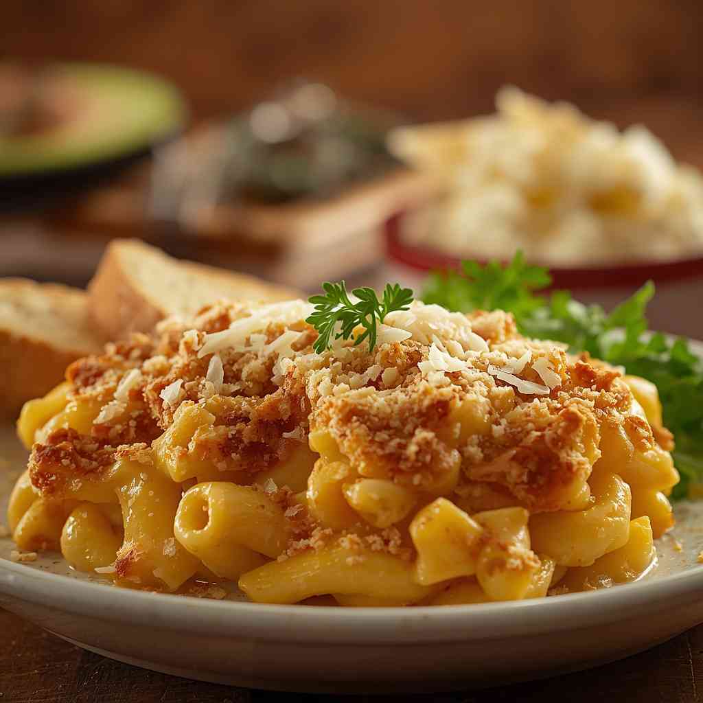 Few dishes evoke comfort and nostalgia like Baked Macaroni and Cheese. Creamy, cheesy, and topped with a golden, buttery bread crumb crust — it’s the definition of classic comfort food. Every forkful delivers silky smooth pasta coated in a luscious cheese sauce, balanced by the satisfying crunch of the topping.