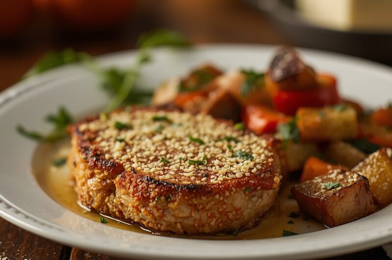 Baked Parmesan Crusted Pork Chops is a recipe that takes juicy pork chops and elevates them with a golden, cheesy, and crunchy crust. The Parmesan cheese blends with breadcrumbs and seasonings to create a flavorful coating that crisps beautifully in the oven, while keeping the pork moist and tender inside.