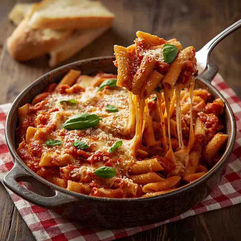 Baked Ziti with Mozzarella and Marinara Sauce is the definition of cozy Italian comfort food — cheesy, saucy, and deeply satisfying. It’s a dish that brings people together, whether for Sunday dinner or a special family gathering.