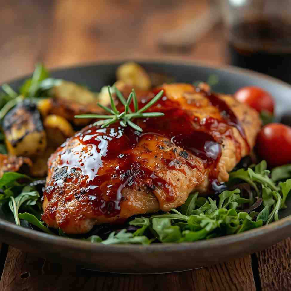- Prepare glaze: Add balsamic vinegar, honey, Dijon mustard, and herbs. Simmer 2–3 minutes.