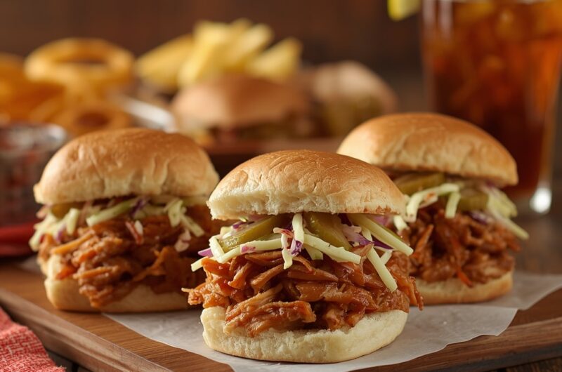 The ease of preparation—especially using a slow cooker or Instant Pot—means you can have mouthwatering, fall-apart pork ready with minimal effort. Topped with tangy coleslaw or pickles, these sliders are juicy, flavorful, and guaranteed to be a crowd-pleaser, making them a must-have for any gathering.