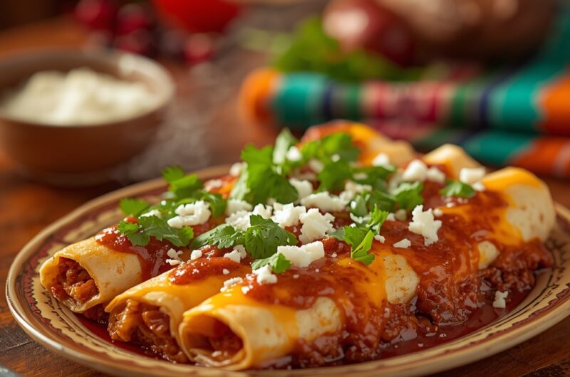 Beef and Cheese Enchiladas are the ultimate comfort food, combining savory seasoned ground beef, rich enchilada sauce, and plenty of melty cheese all wrapped in soft tortillas. Originating from Mexican cuisine, this dish has become a family favorite across the globe for its bold flavors and satisfying heartiness.