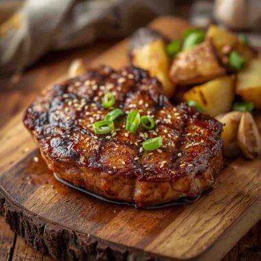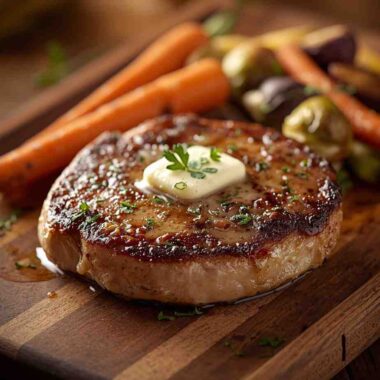 - Add pork chops and sear for 3–4 minutes per side until golden brown and cooked through (internal temp 145°F / 63°C).