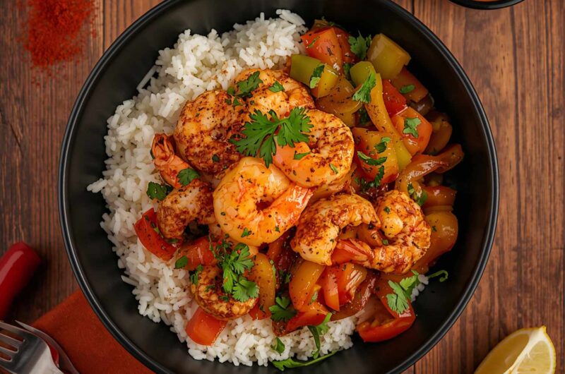 I love this recipe because it delivers restaurant-quality flavor without hours in the kitchen. The shrimp are perfectly spiced, juicy, and slightly smoky from the searing process. Paired with rice and vegetables, each bite is a balance of spice, texture, and freshness. Plus, it’s versatile—you can add your favorite toppings like avocado, green onions, or a drizzle of creamy sauce to make it even more indulgent.