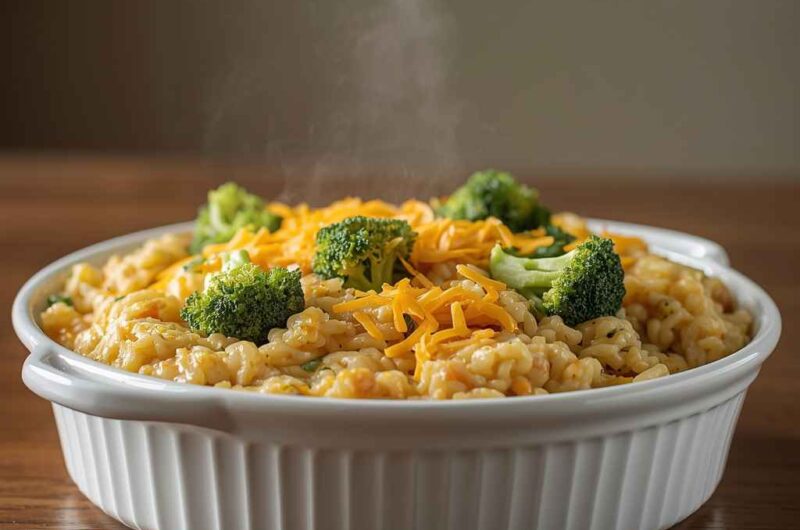 It’s also incredibly flexible. You can use rotisserie chicken, leftover rice, frozen broccoli, and pantry staples — making it convenient and budget-friendly. Best of all, it requires only one baking dish and minimal cleanup.