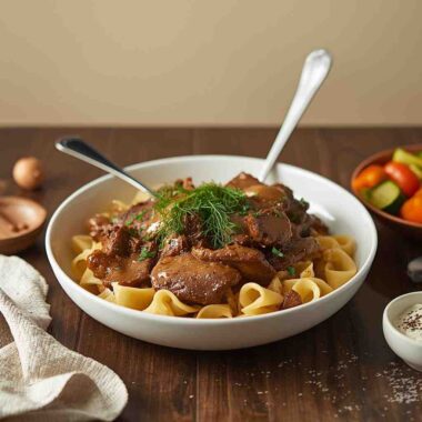 Chicken and Mushroom Stroganoff is a rich, creamy, and comforting dish that brings together tender chicken pieces, earthy mushrooms, and a silky sour cream gravy. Originating from the famous Russian Beef Stroganoff, this variation uses chicken for a lighter, more budget-friendly, and equally delicious twist. With its velvety sauce and bold, satisfying flavor, this dish feels luxurious yet surprisingly easy to prepare.