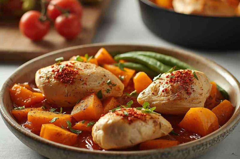 Chicken and Sweet Potato Bake is a simple, wholesome, and deeply satisfying dish that combines tender chicken with naturally sweet, caramelized sweet potatoes. With the addition of fragrant herbs, garlic, olive oil, and warming spices, this meal turns into a beautifully balanced one-pan bake. The sweetness of the potatoes pairs perfectly with savory chicken and roasted vegetables, creating a meal that is both comforting and nutritious.