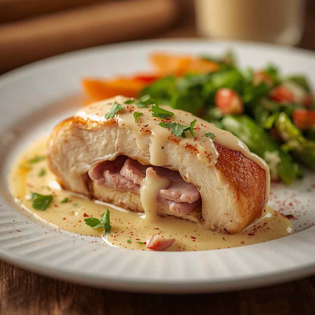 The combination of crispy breadcrumbs, juicy chicken, smoky ham, and melted cheese creates a harmony of flavors that taste gourmet yet comforting like home-cooked food.