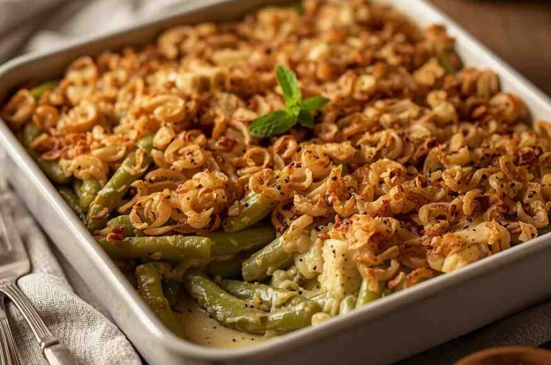 Classic Green Bean Casserole with Crispy Onions is a comforting, flavorful, and timeless side dish that elevates green beans into a creamy, savory, and crunchy delight. Perfect for holidays, family dinners, or special occasions, it’s easy to prepare, versatile, and always a crowd-pleaser. The creamy mushroom sauce and golden onions make this dish a must-have in any classic American recipe collection.