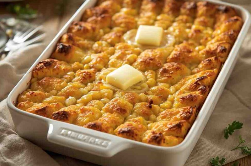 Corn Pudding Casserole with Butter Topping is a creamy, flavorful, and comforting side dish that elevates any meal. Its sweet corn flavor, custard-like texture, and buttery golden topping make it perfect for holidays, potlucks, or family dinners. Easy to make, versatile, and delicious, it’s a must-try Southern classic that will be loved by everyone at the table.