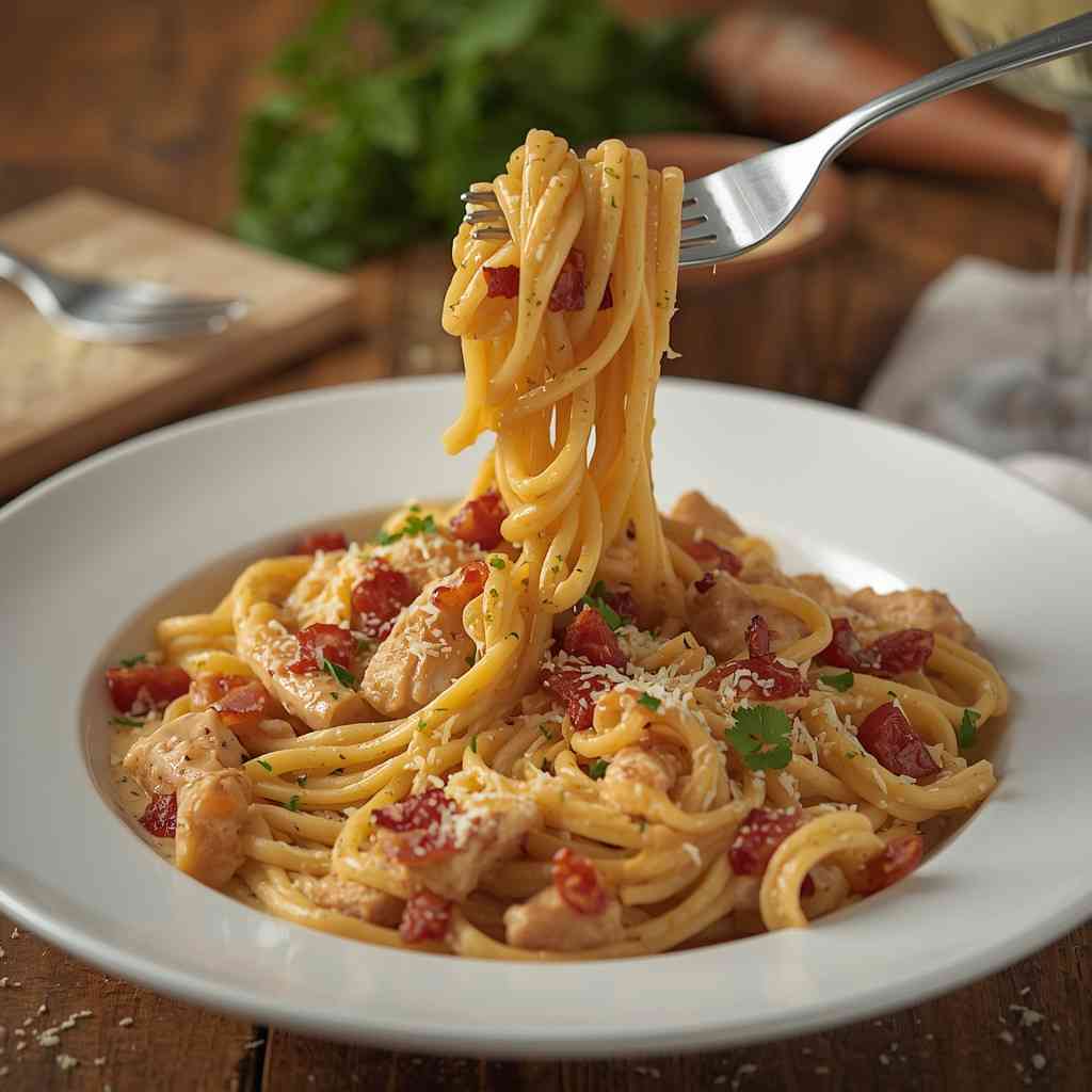 I love this recipe because it has balance — creaminess from the sauce, crispiness from the bacon, mild savory flavor from the chicken, and just the right amount of richness. It’s indulgent but not overly heavy, comforting yet elegant, and incredibly satisfying.