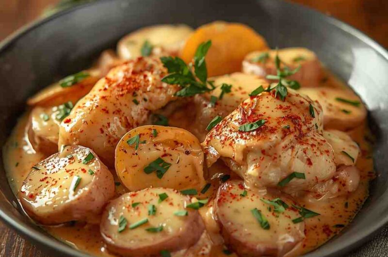 This recipe is ideal for anyone seeking a one-pan meal that combines protein, starch, and creamy indulgence. The combination of tender chicken, perfectly cooked potatoes, and luscious sauce ensures every bite is satisfying, cozy, and full of flavor.