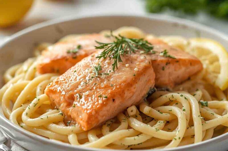 This recipe is a must-try for anyone who loves salmon and creamy pasta with a bright lemon flavor.