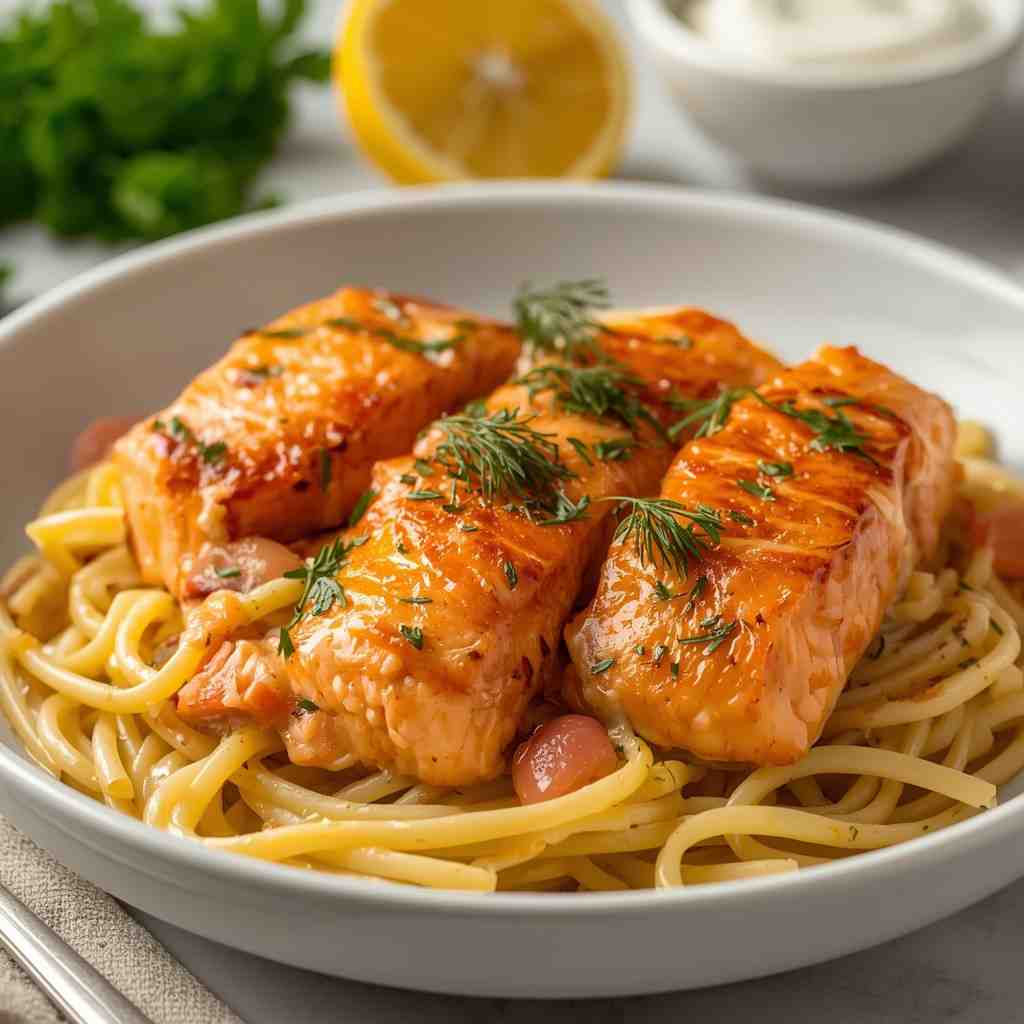 Creamy Lemon Salmon Pasta is a comforting yet elegant dish that combines tender salmon, creamy lemon sauce, and perfectly cooked pasta. Quick to prepare and packed with flavor, it’s perfect for weeknight dinners, date nights, or special occasions. With its balance of rich cream, tangy lemon, and savory salmon, it’s a must-try recipe for anyone who loves creamy, flavorful pasta dishes.