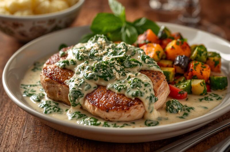 Creamy Spinach Pork Chops are a quick, indulgent, and satisfying meal that turns simple pork chops into a restaurant-quality dish. The tender pork paired with a luscious garlic-spinach cream sauce makes it a perfect dinner for family, friends, or special occasions. Easy to make, full of flavor, and visually appealing, this recipe is guaranteed to become a favorite in your dinner rotation.