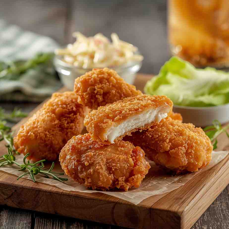 Serve hot with sides such as mashed potatoes, coleslaw, fries, biscuits, steamed vegetables, or fresh salad. Honey drizzle or spicy dipping sauce pairs beautifully for added flavor.