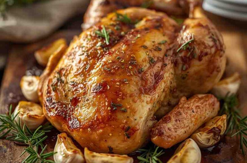 - Baste every 20–30 minutes for golden, crispy skin. Check internal temp with a meat thermometer.