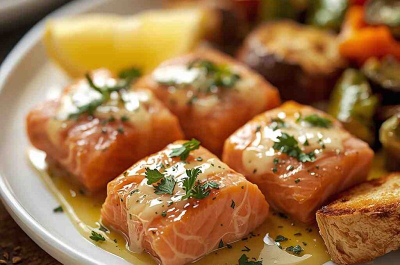 - Creamy Garlic Butter Salmon Bites: Add ¼ cup heavy cream to the sauce for a velvety finish.