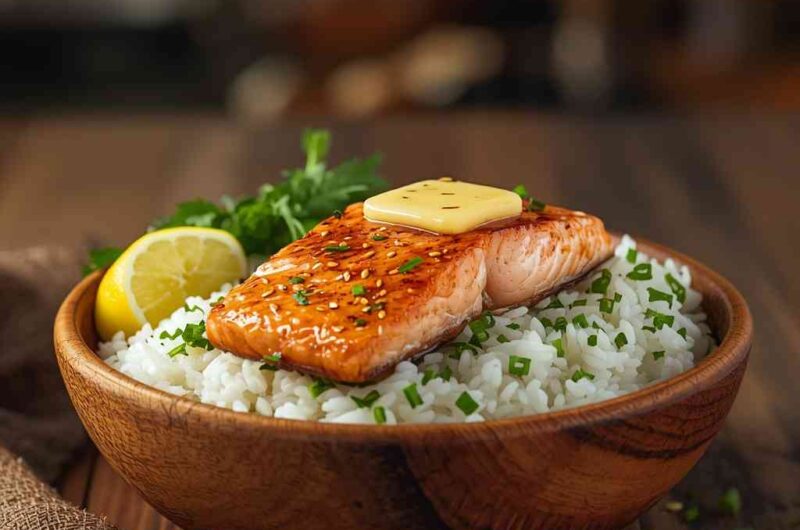 I love this recipe because it’s simple yet luxurious — the buttery garlic sauce coats the salmon perfectly, infusing it with deep flavor and a hint of lemony freshness. The warm rice acts as the perfect base, soaking up all that buttery goodness.
