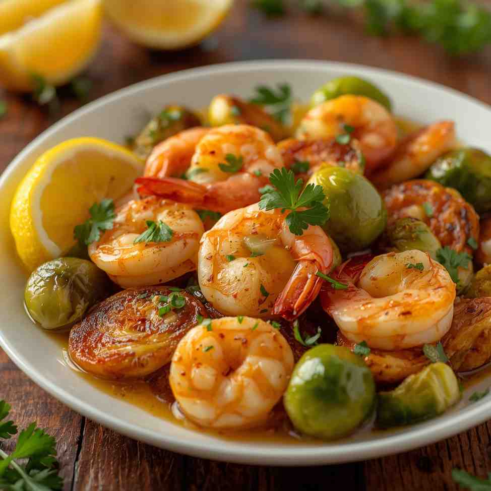 Garlic Butter Shrimp with Brussels Sprouts is a flavorful, elegant, and nutritious dish that brings out the best of simple ingredients. The shrimp are tender and buttery, the Brussels sprouts perfectly caramelized, and the garlic sauce ties it all together with irresistible aroma and taste.