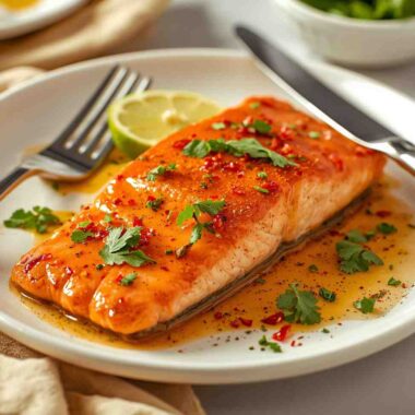 - Place salmon fillets in the skillet and cook for 4–5 minutes per side, until golden and cooked through (internal temperature 145°F / 63°C).