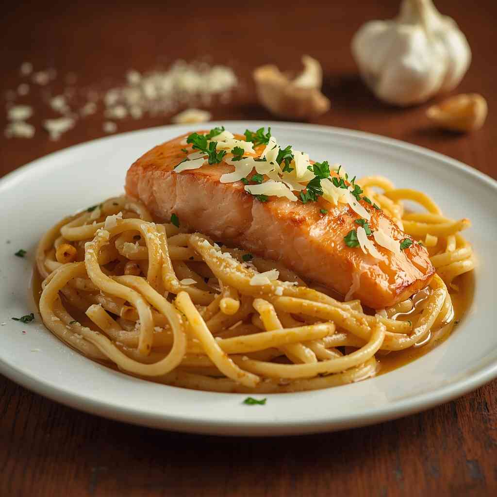 Garlic Parmesan Salmon Pasta is the ultimate comfort meal — creamy, garlicky, cheesy, and perfectly balanced with the delicate flavor of salmon. It’s elegant enough for entertaining but simple enough for a weeknight dinner. Every bite is rich yet refreshing, with the satisfying combination of pasta and tender fish.