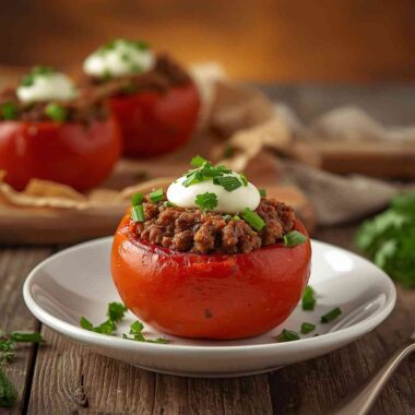 I love this recipe because it combines simplicity with elegance. The filling is hearty and savory, while the roasted peppers add sweetness and tenderness. It’s a one-dish meal that satisfies both adults and kids, and it looks impressive on the table. Each bite is bursting with flavor and texture — juicy beef, tender rice, and soft bell peppers, all complemented by a lightly spiced tomato sauce.