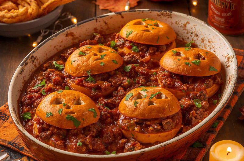Halloween Sloppy Joes with Jack-O’-Lantern Buns are a fun, festive, and hearty meal perfect for spooky celebrations. With a rich, flavorful meat filling and playful carved buns, this recipe brings together comfort food and creative presentation, delighting kids and adults alike. Easy to prepare, customizable, and visually impressive, it’s a must-try dish for any Halloween table.