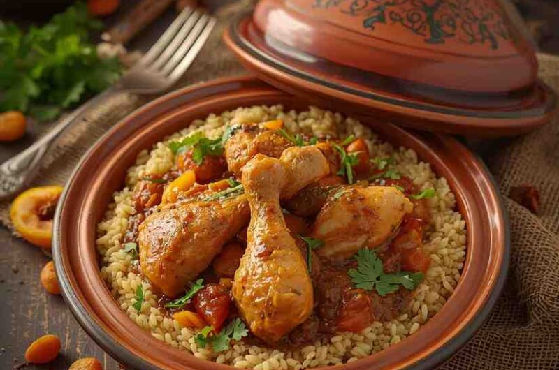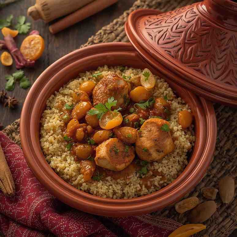The result is a beautifully balanced meal where the richness of the chicken and savory vegetables meets the delicate sweetness of apricots, accented with fragrant Moroccan spices.