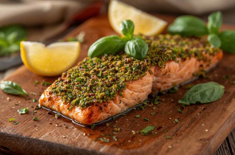 - Grilled Version: Grill salmon with pesto on medium heat for 6–8 minutes per side.
