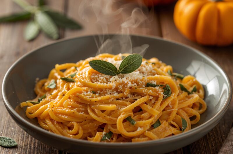 This Pumpkin Alfredo Pasta with Sage is the perfect fall-inspired comfort dish. Creamy, aromatic, and beautifully golden-orange, it combines seasonal flavors with classic Italian comfort. Whether for Halloween, Thanksgiving, or a cozy weeknight dinner, it’s a dish that feels special yet comes together quickly. With its balance of savory Parmesan, sweet pumpkin, and crispy sage, this pasta is a true autumn indulgence you’ll want to make again and again.
