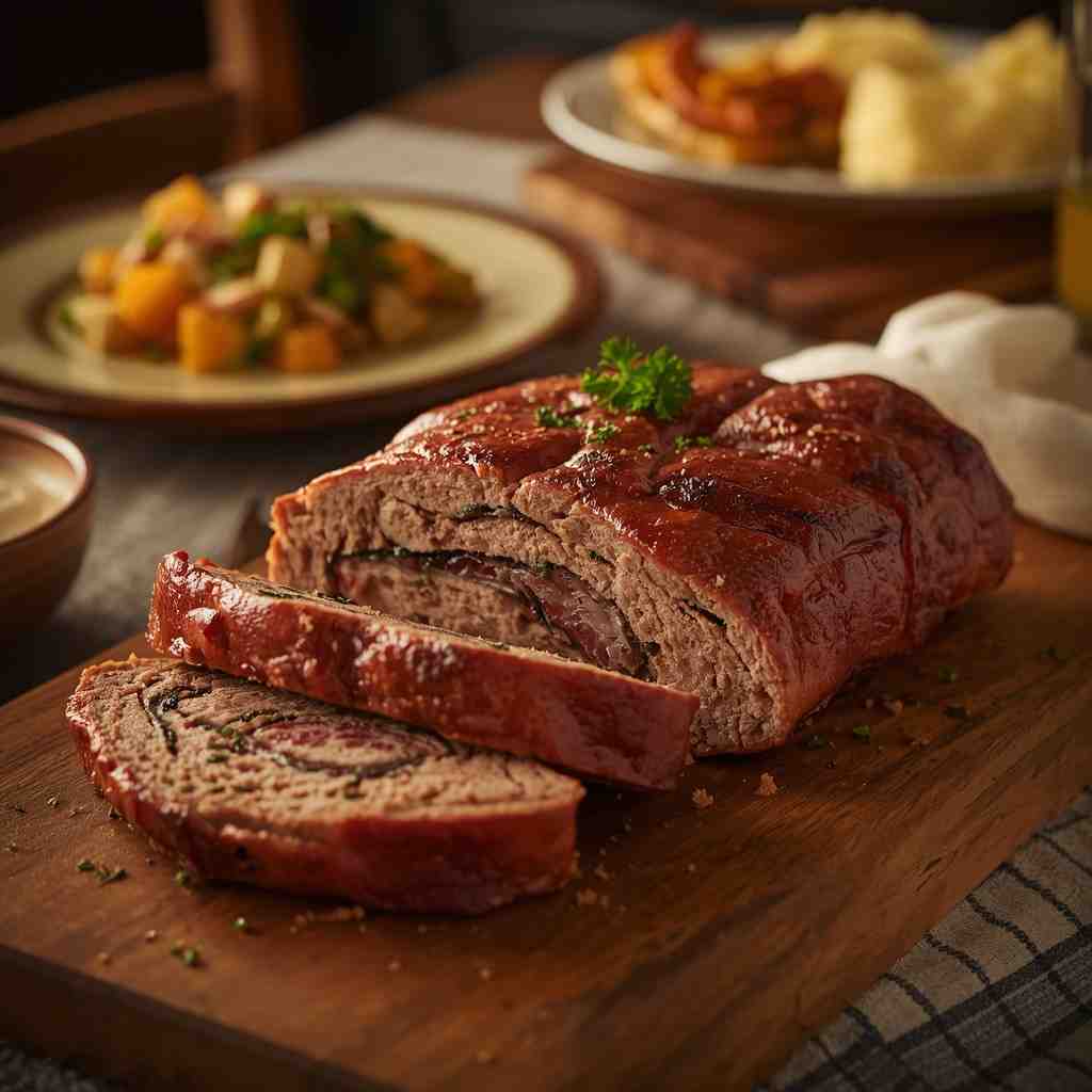 - Bake 55–60 minutes until bacon is crispy and meatloaf reaches an internal temperature of 160°F (71°C).