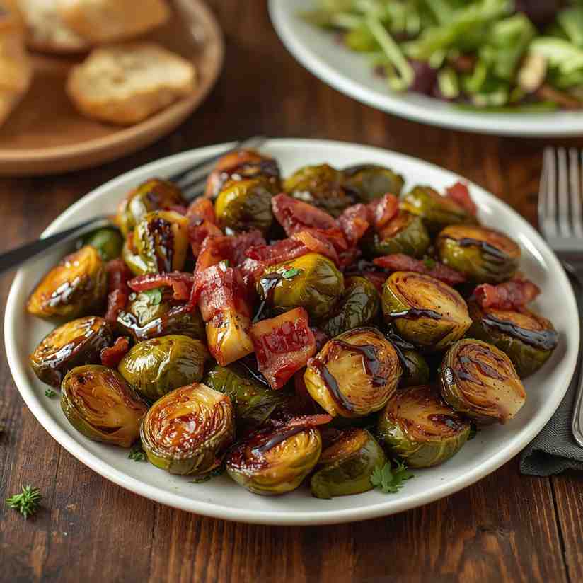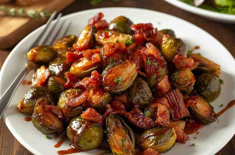 Roasted Brussels Sprouts with Bacon and Balsamic Glaze