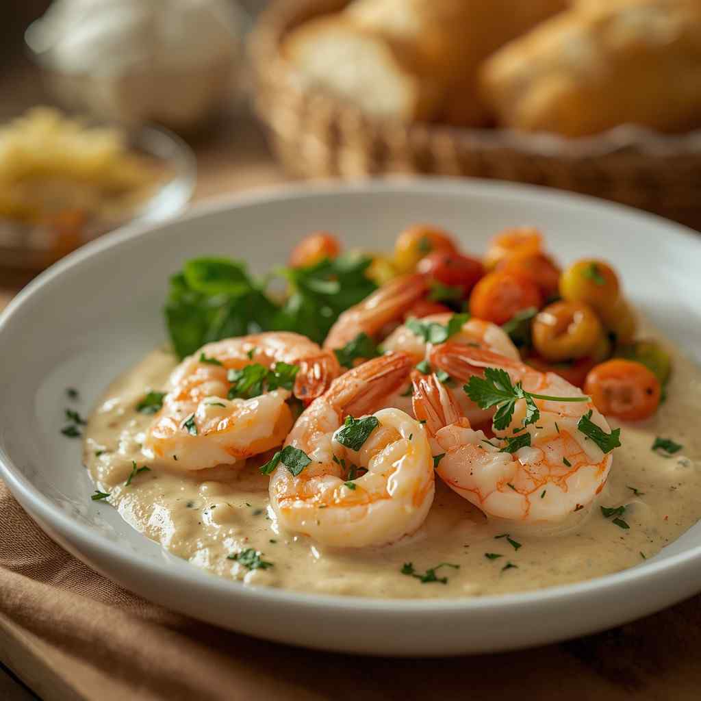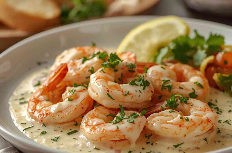Shrimp with Garlic Cream Sauce is a luxurious, restaurant-quality dish that combines tender, juicy shrimp with a luscious, velvety garlic cream sauce. The sauce — rich with butter, cream, garlic, and a touch of Parmesan — perfectly coats each shrimp for an indulgent yet easy-to-make meal.