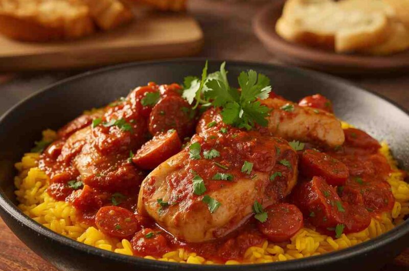 Spanish Chicken and Chorizo Bake is a vibrant, flavorful, and easy-to-make dish that brings the warmth of Spanish cuisine into your home. With juicy chicken, smoky chorizo, and colorful vegetables infused with paprika and herbs, it’s a feast for both the eyes and the taste buds. Perfect for family dinners, special occasions, or a cozy weekend meal, this one-pan bake is sure to become a favorite in your kitchen.