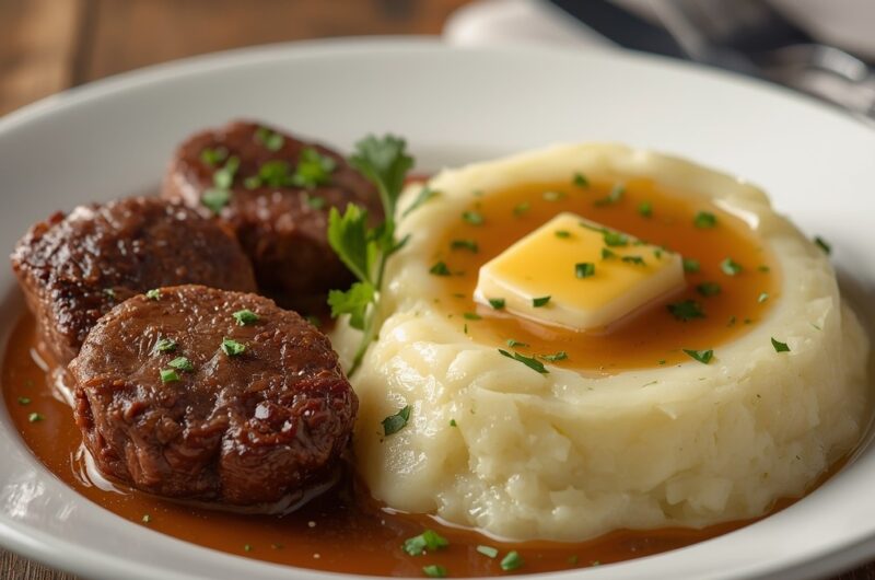 When paired with creamy, buttery mashed potatoes, the combination feels luxurious and comforting all at once. It’s a dish that satisfies both cravings for something hearty and indulgent while still being simple enough for a weeknight meal.