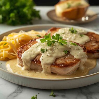 This recipe turns simple pork chops into a gourmet-style meal without requiring complicated steps, making it perfect for weeknight dinners or a special occasion dinner.