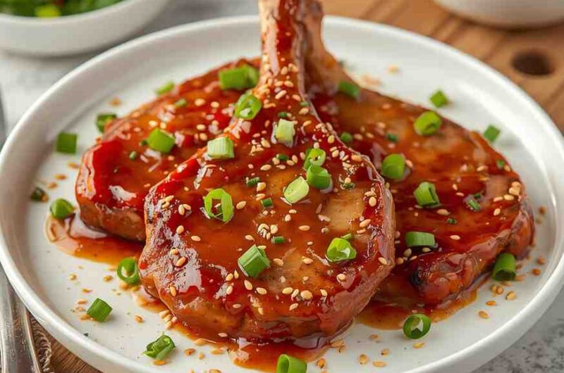 Sweet Chili Glazed Pork Chops are the perfect blend of sweet, spicy, and savory — tender, juicy pork chops glazed in a sticky, golden-red sauce made from Asian sweet chili, garlic, honey, and soy. Every bite bursts with flavor — a perfect combination of heat and sweetness that caramelizes beautifully on the pork.