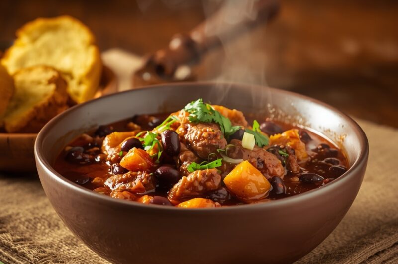 Turkey and Pumpkin Chili with Black Beans is a hearty, healthy, and flavorful twist on traditional chili. Lean ground turkey provides protein, pumpkin adds natural sweetness and creaminess, and black beans contribute fiber and texture.