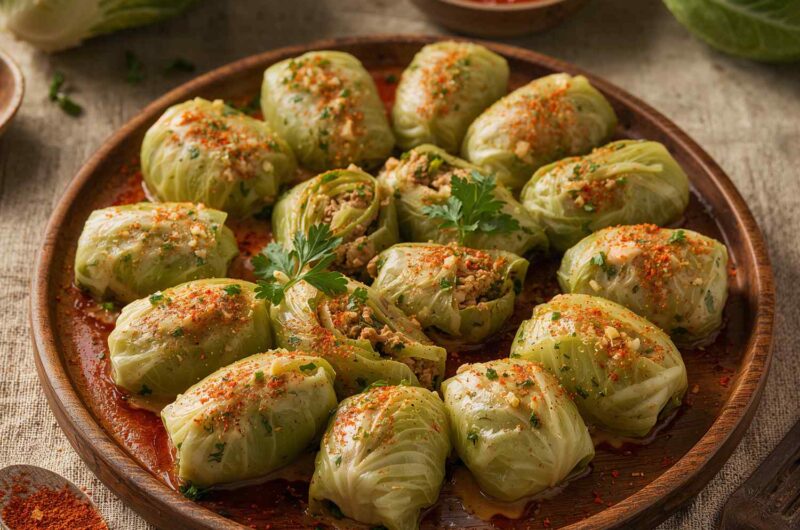 Vampire-Stuffed Cabbage Rolls are a spooky Halloween twist on the classic Eastern European comfort dish. Tender cabbage leaves are stuffed with a savory filling of ground meat, rice, onions, and spices, then simmered in a rich, “bloody” tomato sauce that makes them both eerie and delicious. The deep red sauce gives this dish its vampire-inspired name, making it perfect for a Halloween dinner or themed party.