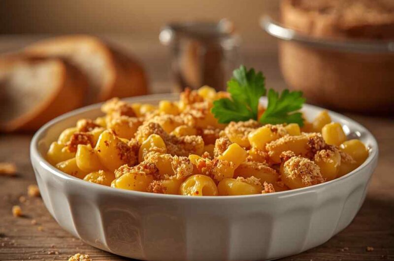 • Add Topping: Mix breadcrumbs with melted butter and sprinkle on top.