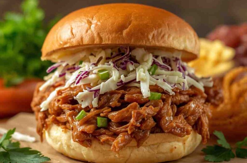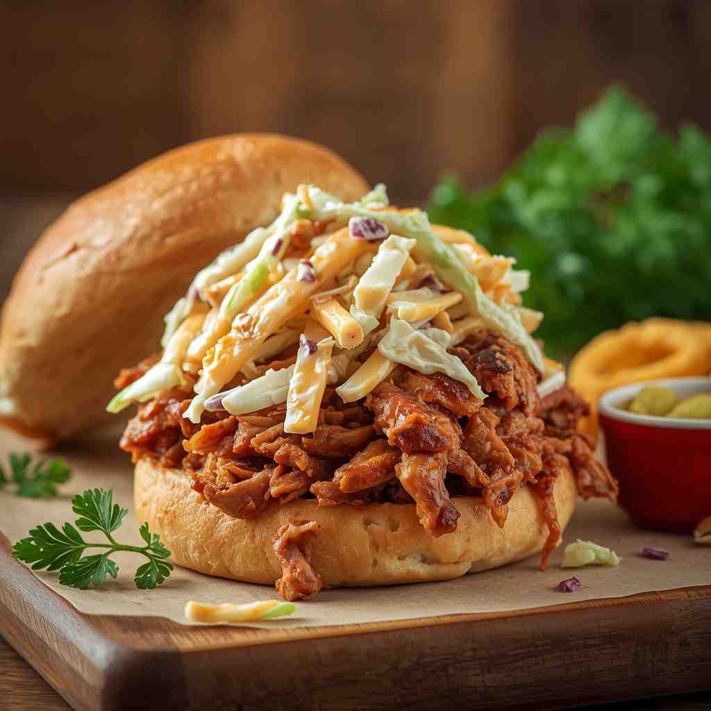 A BBQ Pulled Pork Sandwich with Coleslaw is the ultimate comfort food—a perfect balance of smoky, savory, sweet, and tangy flavors layered between a soft toasted bun. The tender slow-cooked pork is infused with spices and barbecue sauce, creating melt-in-your-mouth texture and bold flavor. When topped with cool, creamy coleslaw, it becomes a masterpiece of contrasting textures and tastes.