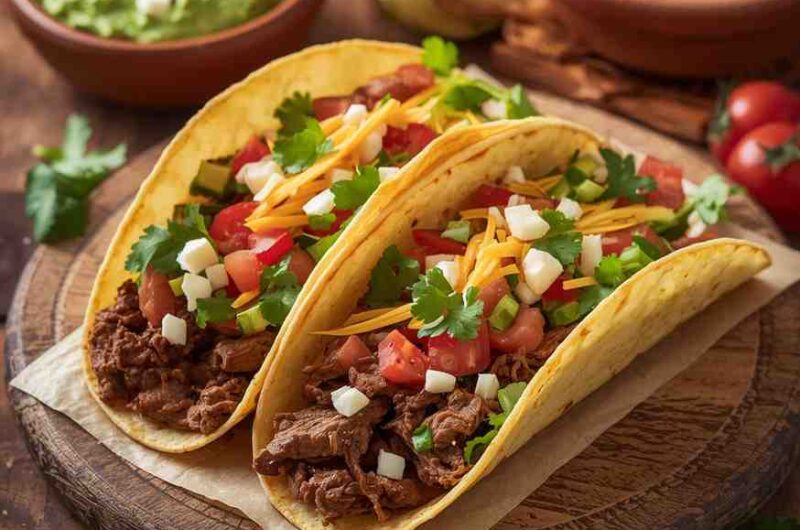 Beef Tacos with Salsa and Guacamole are a classic Mexican-inspired dish that brings bold flavors, fresh ingredients, and a fun, hands-on dining experience. Tender, seasoned ground beef is paired with crunchy taco shells, fresh salsa, creamy guacamole, and optional toppings like cheese, lettuce, and sour cream to create a meal that’s colorful, flavorful, and satisfying.