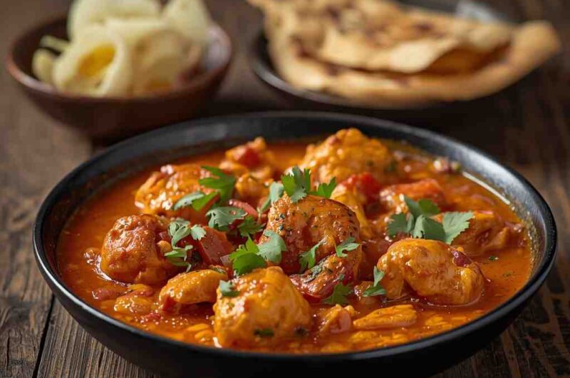 Butter Chicken with Garlic Naan Bread is one of those timeless Indian dishes that instantly feels comforting, indulgent, and deeply satisfying. Originating from North India, this dish is a beautiful balance of tender marinated chicken simmered in a velvety tomato-butter gravy infused with cream, warming spices, and a hint of sweetness — making it universally loved across taste preferences.
