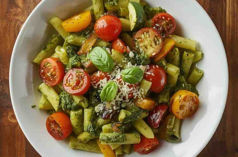 Roasted Vegetable and Pesto Pasta is a colorful, healthy, and satisfying dish that’s perfect for any occasion. The natural sweetness of the roasted vegetables pairs beautifully with the fresh, aromatic pesto, creating a meal that’s both visually appealing and deeply flavorful. Quick to prepare and versatile, it can be adapted to include proteins, different vegetables, or dietary preferences, making it a staple recipe for weeknight dinners, gatherings, or meal prep. With its balance of nutrition, flavor, and ease, this dish is a must-have for pasta lovers everywhere.